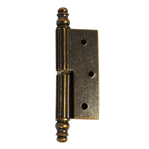 Meubelpaumelle in gebronsd messing met vaasknop voor een deurtje dat aan de linkerkant scharniert. Het deel met de pen monteert u op het vaste gedeelte, het andere deel aan het deurtje.